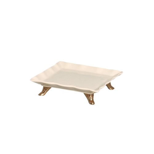 Suporte Porcelana creme c/ pé Dourado Retangular